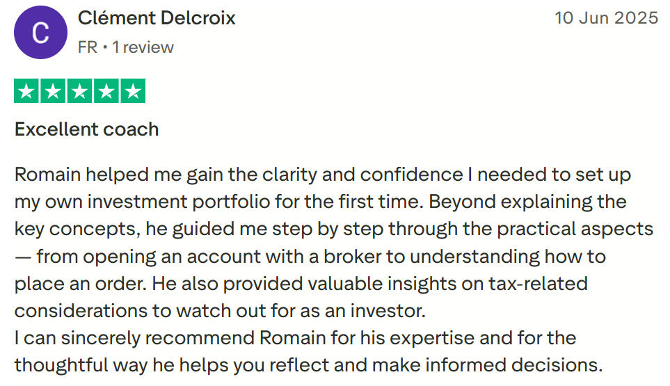 © Smart Money Growth. All rights reserved. Smart Money Growth and Romain provide financial education and coaching services. We do not provide investment advice, individual recommendations, or manage investments on behalf of clients. The information shared on this website, the guide, during workshop/strategic sessions, mentorship sessions or through any other content is for informational and educational purposes only. It is not intended to constitute legal, tax, or investment advice, nor an offer or solicitation to buy or sell any financial product. Each individual is responsible for their own investment decisions. If you require personalized financial advice, please consult a licensed financial advisor or other qualified professional.